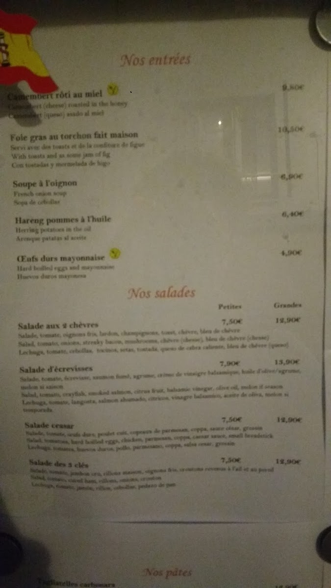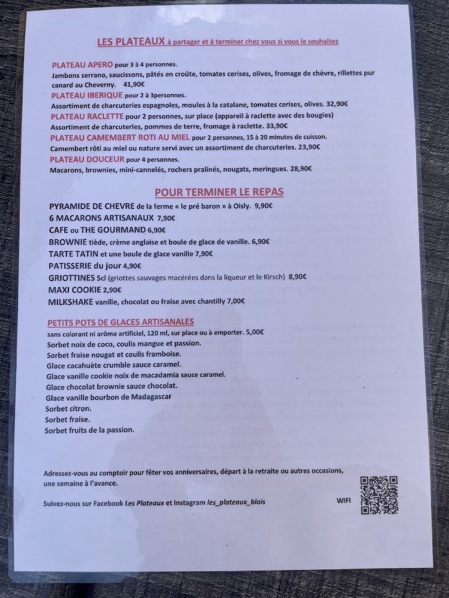 Restaurant Les Trois Cles/ Les plateaux Menu
